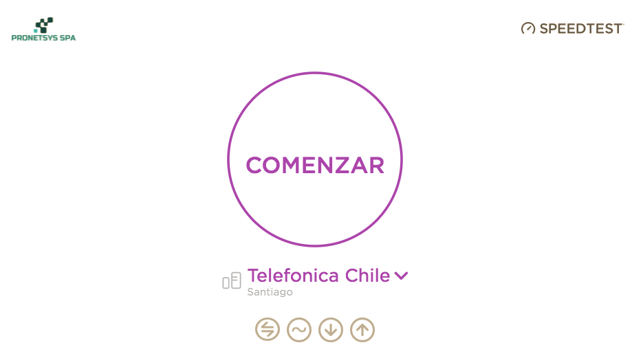 Herramienta de verificación y medición de ancho de banda nacional e internacional, Valida para realizar pruebas de velocidad en Chile, contra proveedores como GTD, VTR, Telefónica, Entel, WOM, Claro.